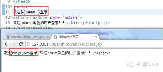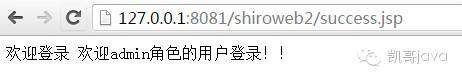 当用户有admin角色的时候在success.jsp页面显示【欢迎admin角色的用户登录!!】如果用户不是admin角色的时候显示【欢迎登陆】