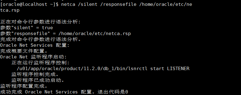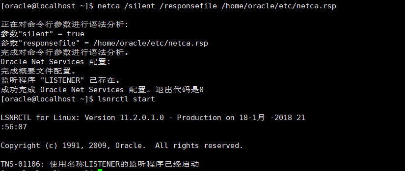 使用命令:netca /silent /responsefile /home/oracle/etc/netca.rsp